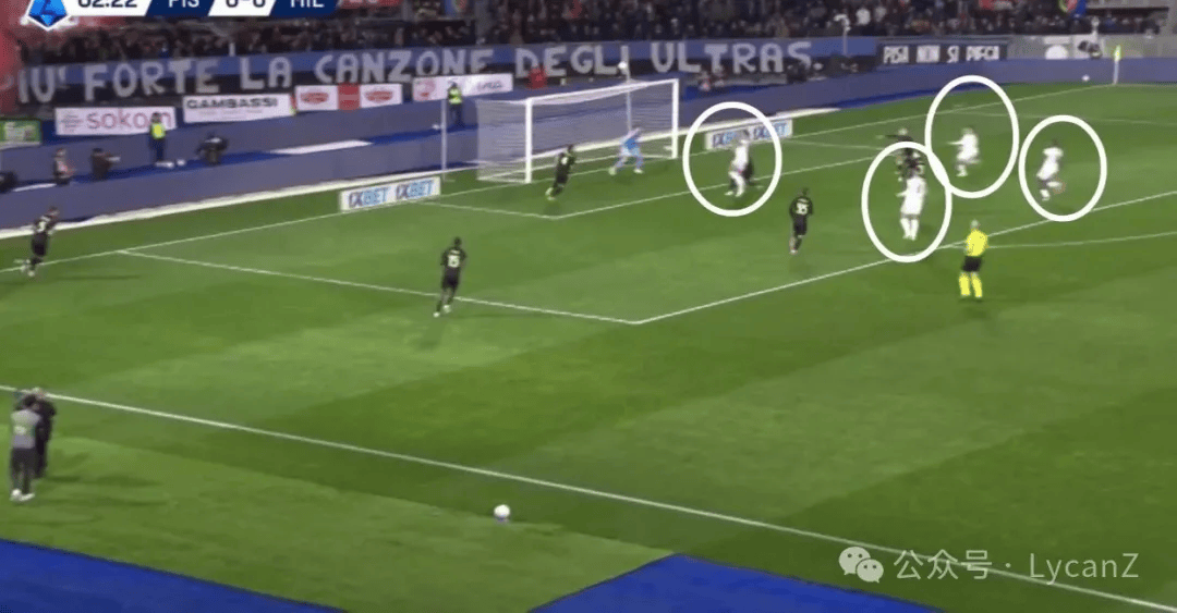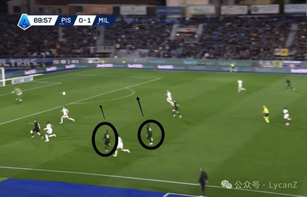 70′00″比萨扳平比分:长传绕过了中场,米兰后卫放弃压迫,阿特卡梅没选择跟防,弗法纳也远离没有选择加速回防,最终送点的洛约拉打进无比轻松的进球。