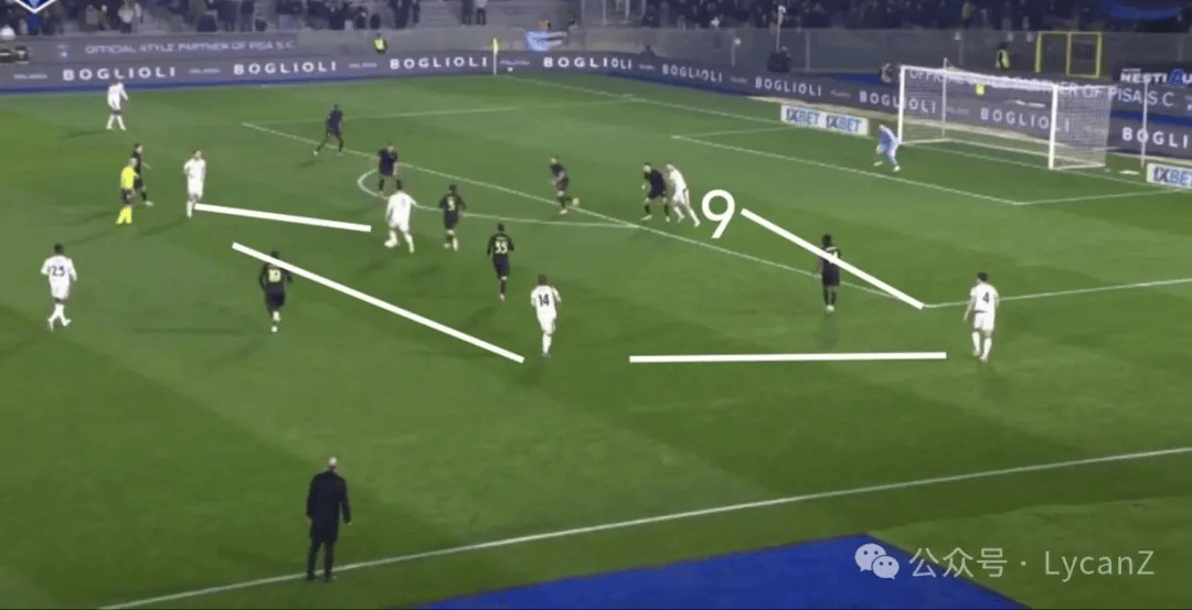 最大的问题还在于中锋拿不住球,对手的反击几乎立刻就有机会利用米兰中场后卫之间的空间,比萨上半时最好的一次机会也是这么来的。