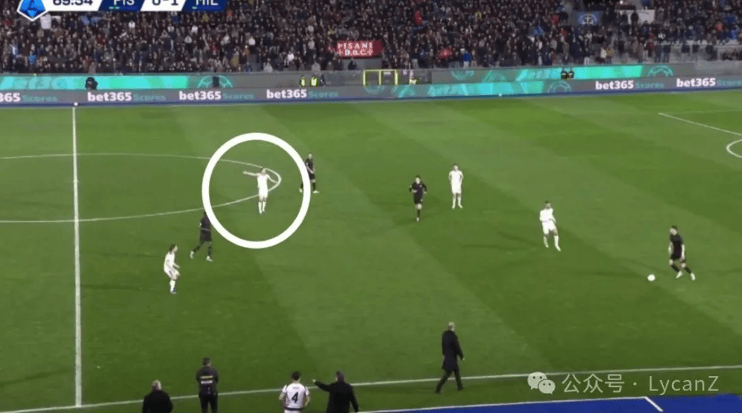 米兰的进攻模式还是相对固定的:锋线回撤做轴,中场前插吸引防守创造空间,边路接应传球后,或者自己直接传中,或者联动前插的队友制造传中机会。